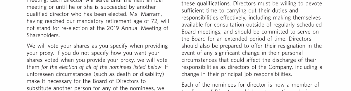 Review our director nominees' biographies, skills/qualifications, committees, and more in our interactive