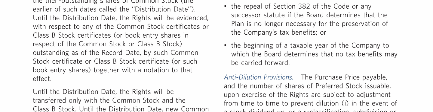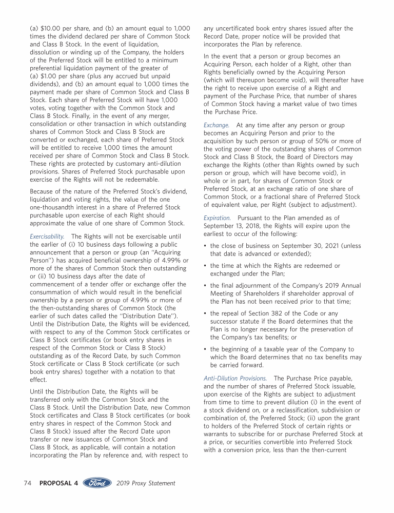 Proposal 4. Approval of the Tax Benefit Preservation Plan