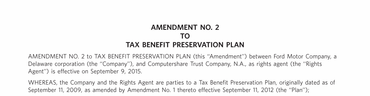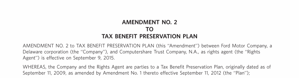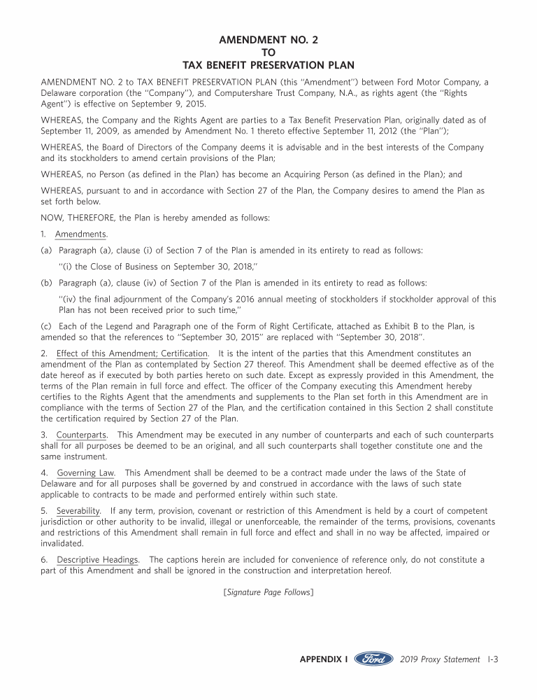 Appendix I. Tax Benefit Preservation Plan