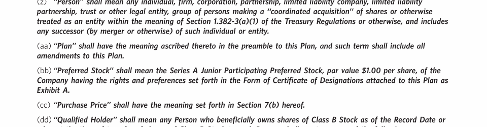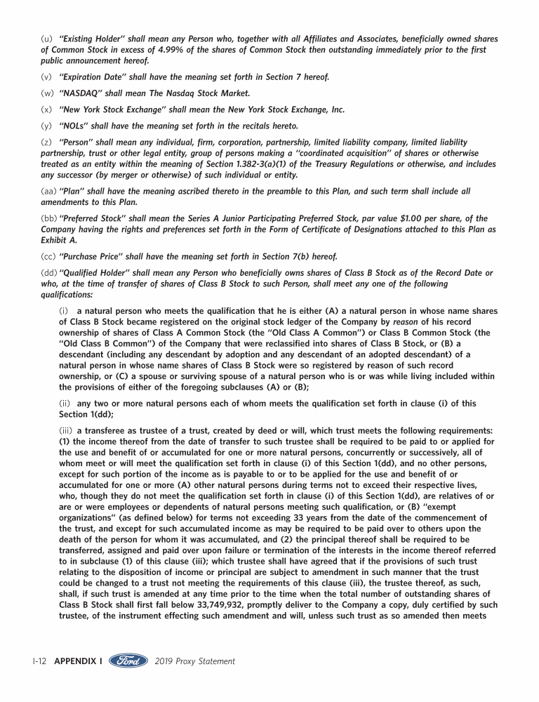 Appendix I. Tax Benefit Preservation Plan
