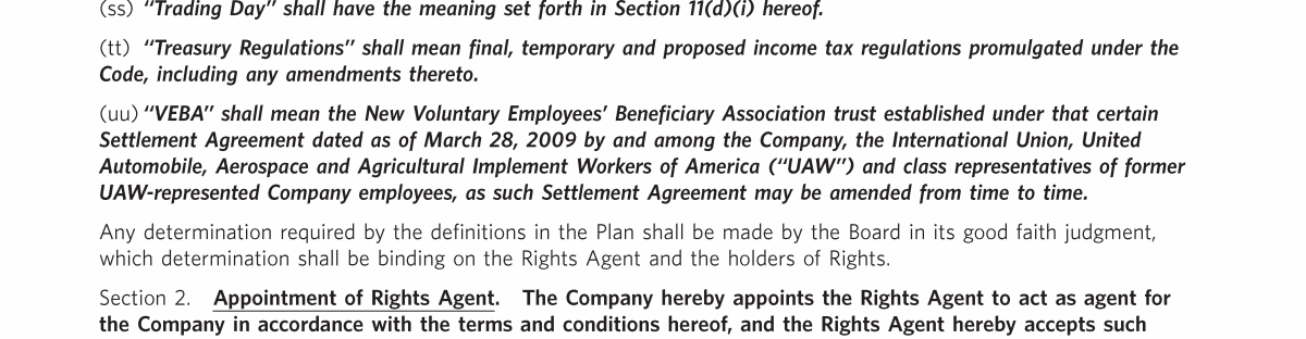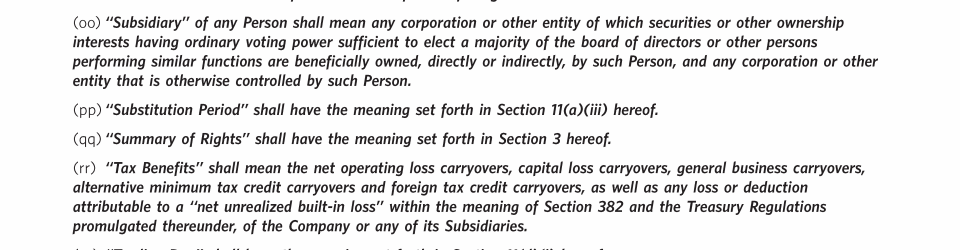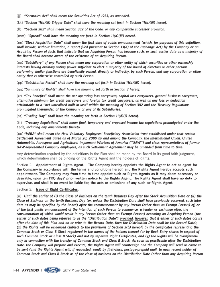 Appendix I. Tax Benefit Preservation Plan