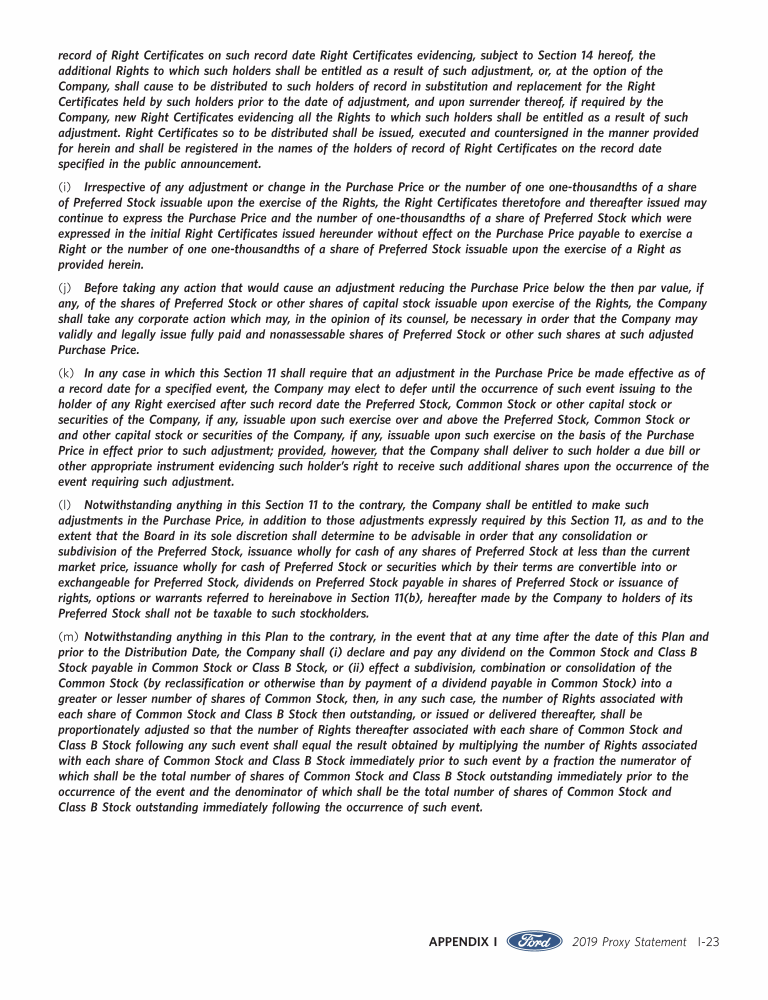 Appendix I. Tax Benefit Preservation Plan