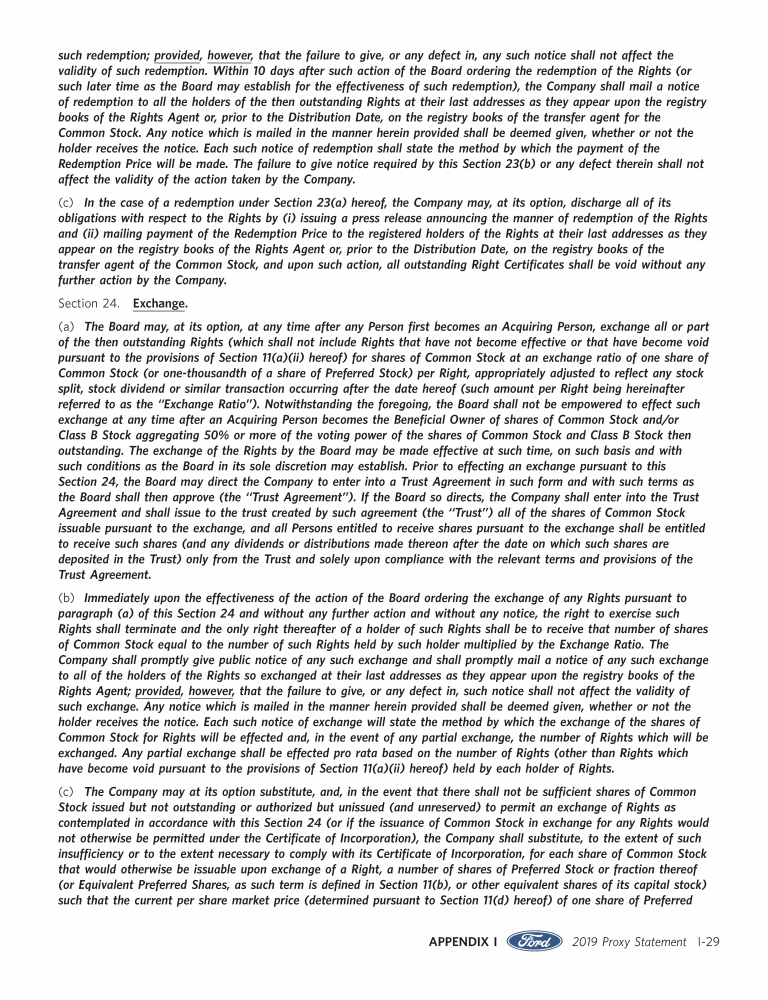 Appendix I. Tax Benefit Preservation Plan
