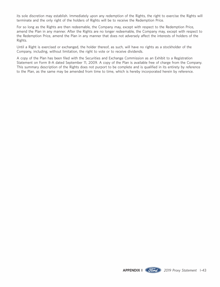 Appendix I. Tax Benefit Preservation Plan