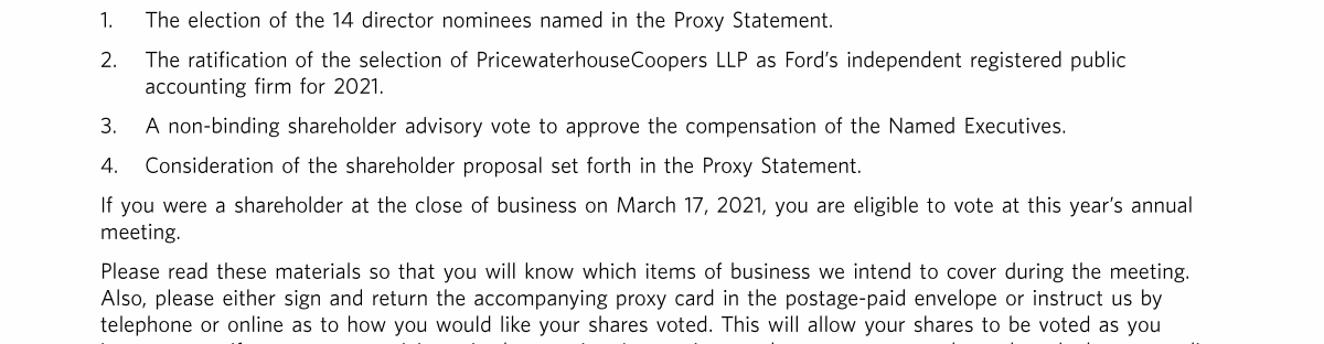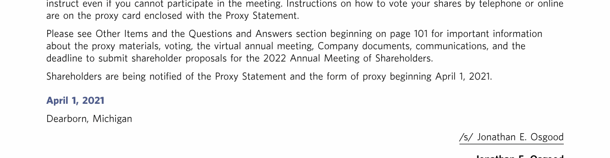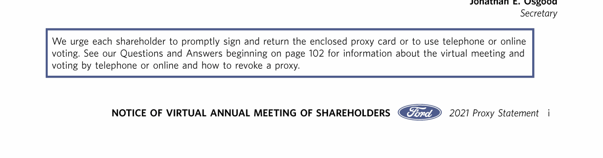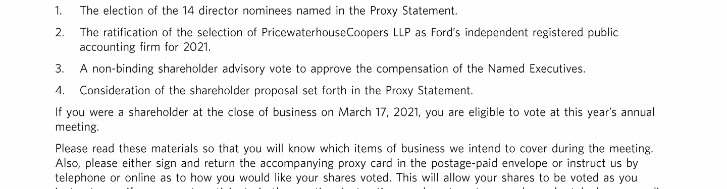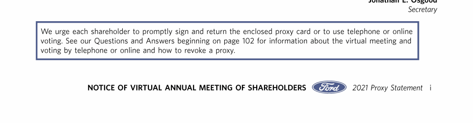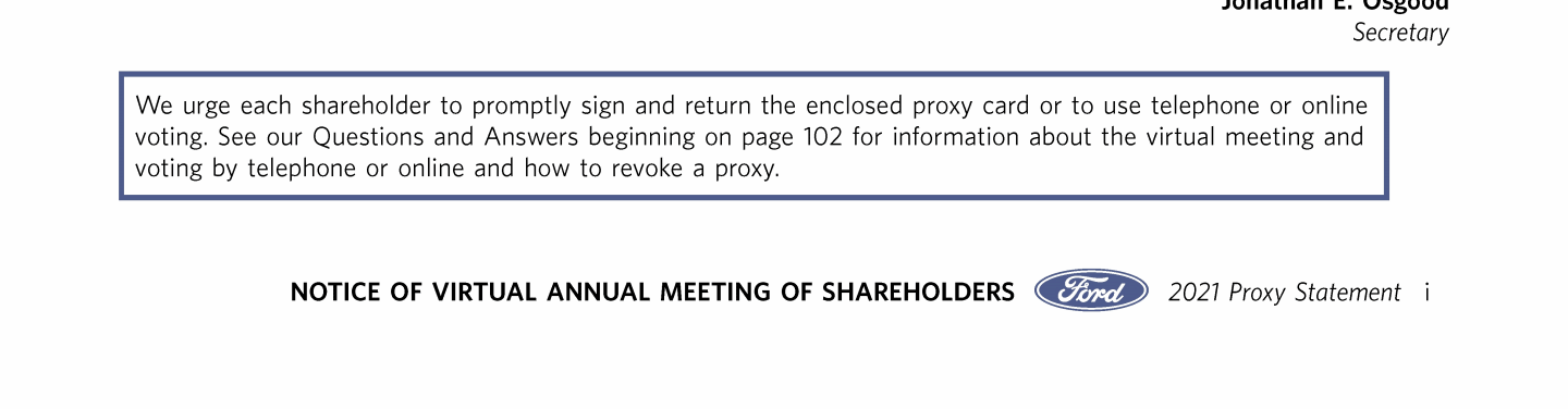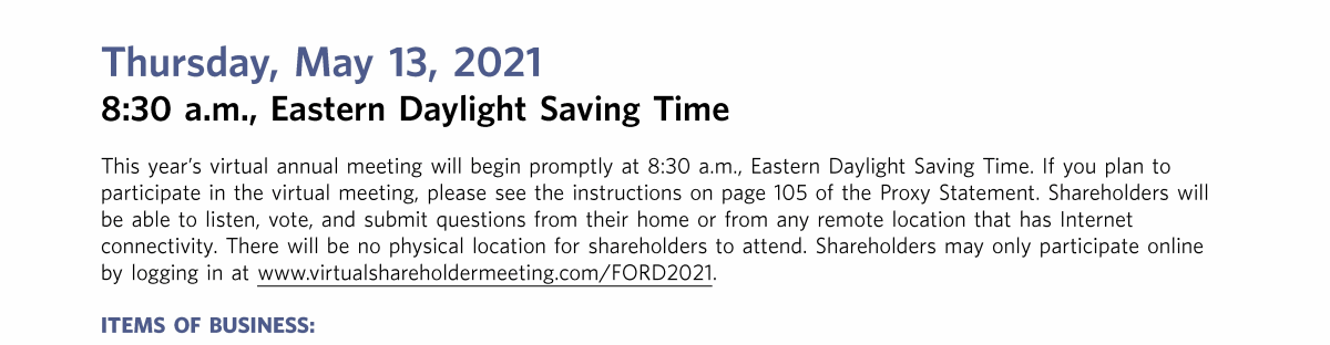 Notice of Virtual Annual Meeting of Shareholders of Ford Motor Company