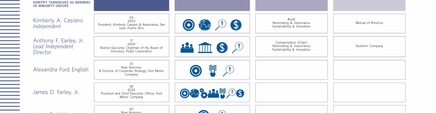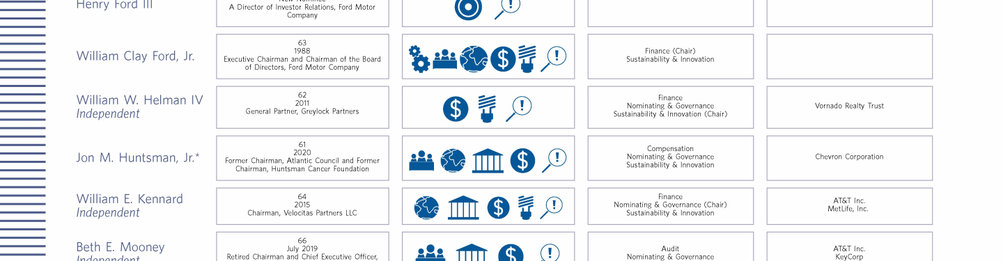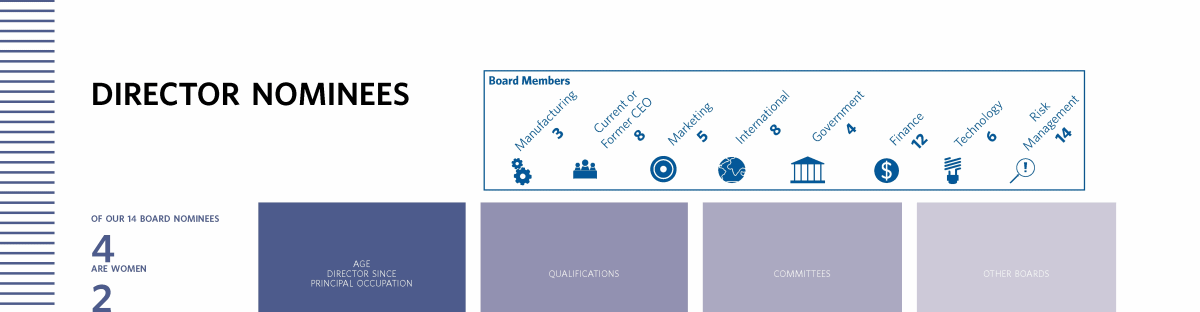 Review our director nominees' biographies, skills/qualifications, committees, and more in our interactive