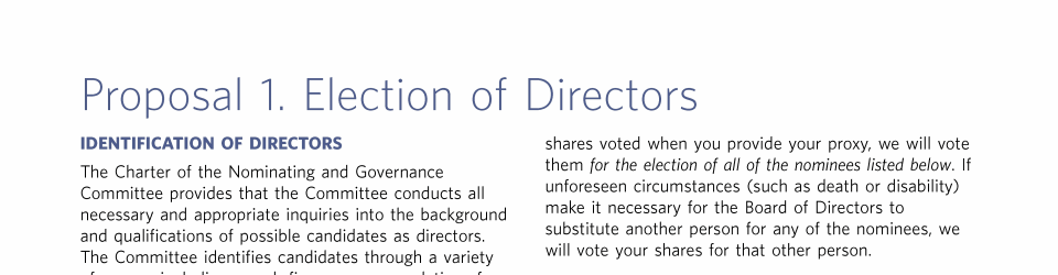 Review our director nominees' biographies, skills/qualifications, committees, and more in our interactive