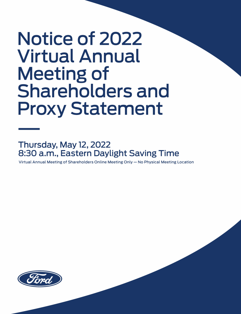 Notice of Virtual Annual Meeting of Shareholders of Ford Motor Company