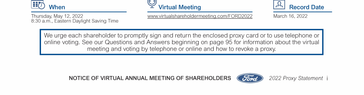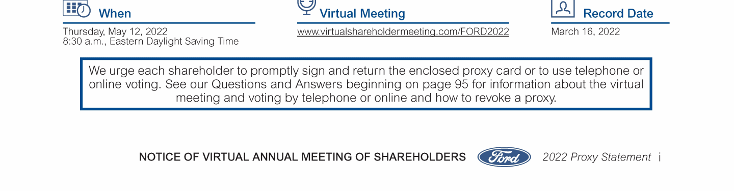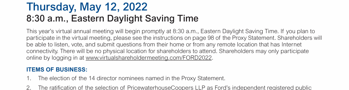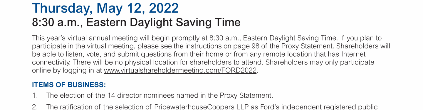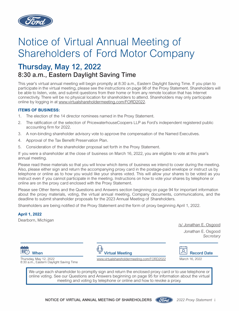 Notice of Virtual Annual Meeting of Shareholders of Ford Motor Company