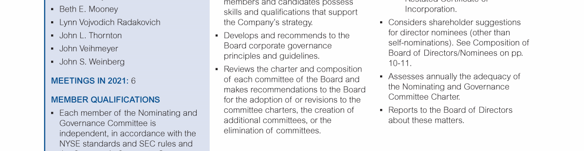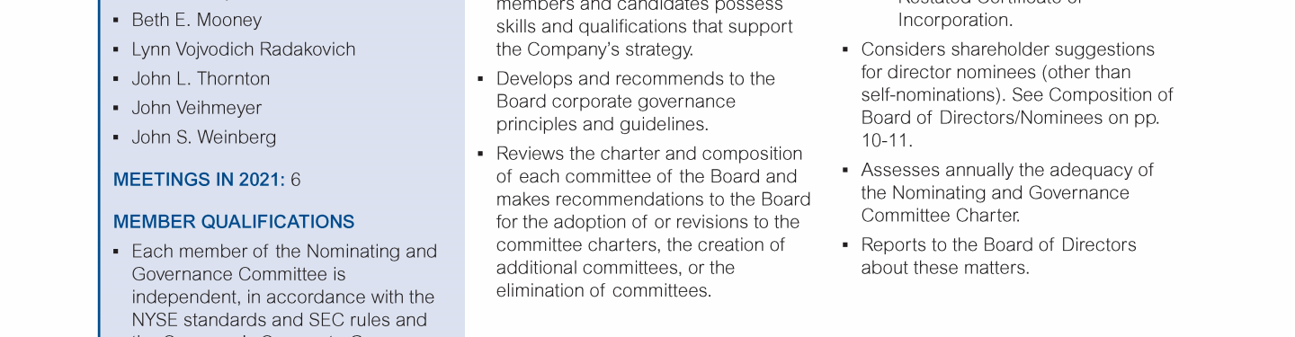 Review our director nominees' biographies, skills/qualifications, committees, and more in our interactive