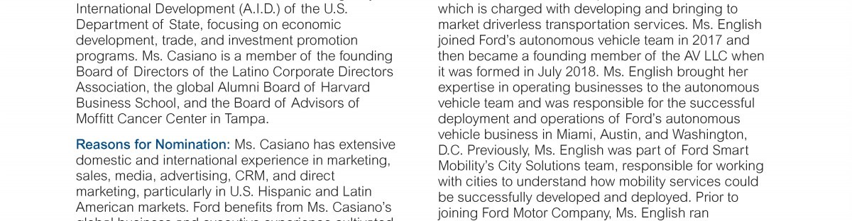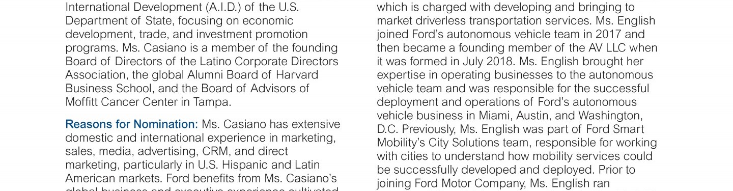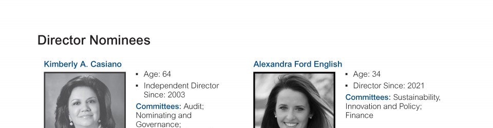 Review our director nominees' biographies, skills/qualifications, committees, and more in our interactive