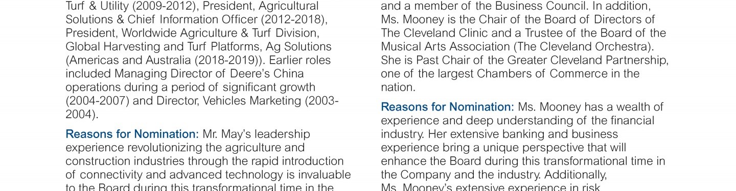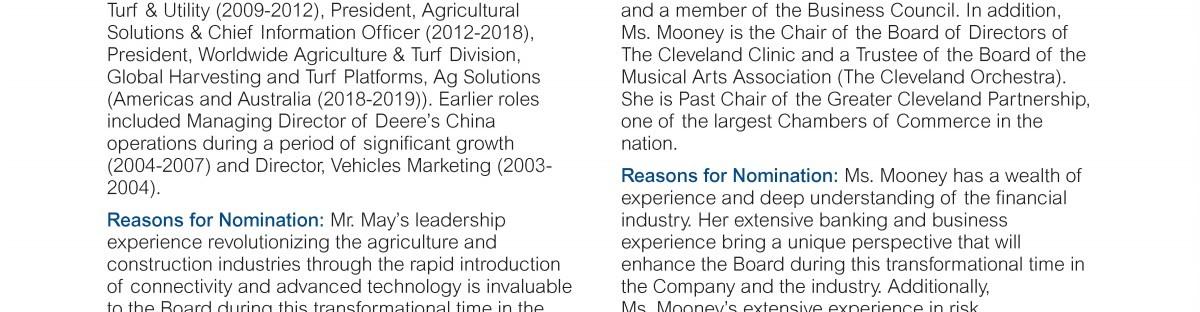 Review our director nominees' biographies, skills/qualifications, committees, and more in our interactive