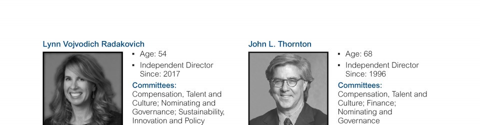 Review our director nominees' biographies, skills/qualifications, committees, and more in our interactive