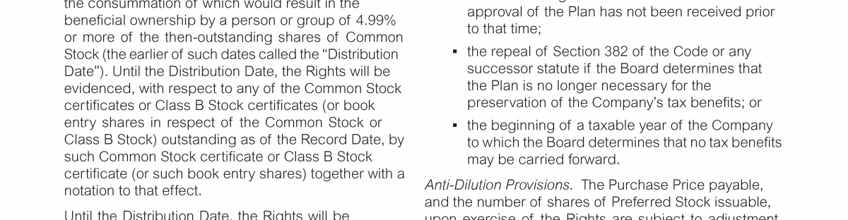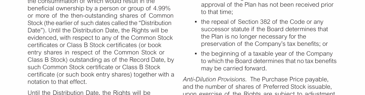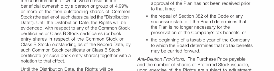 Proposal 4. Approval of the Tax Benefit Preservation Plan