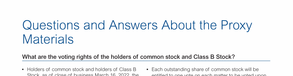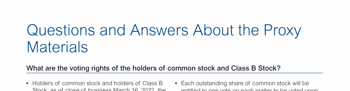 Questions and Answers About the Proxy Materials