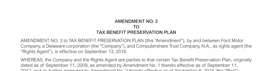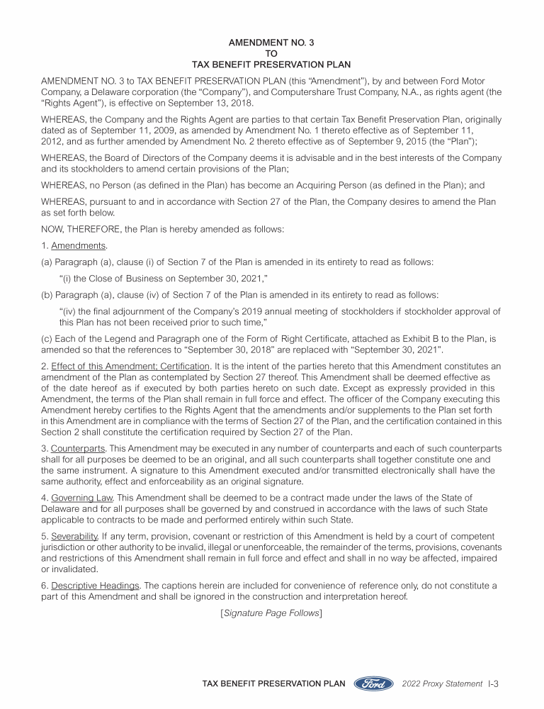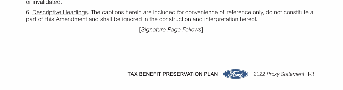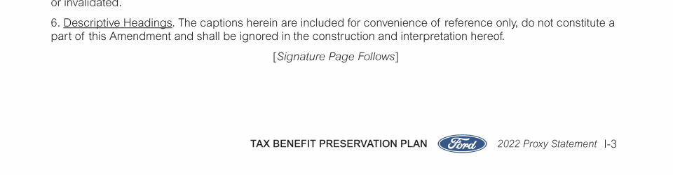 Appendix I. Tax Benefit Preservation Plan