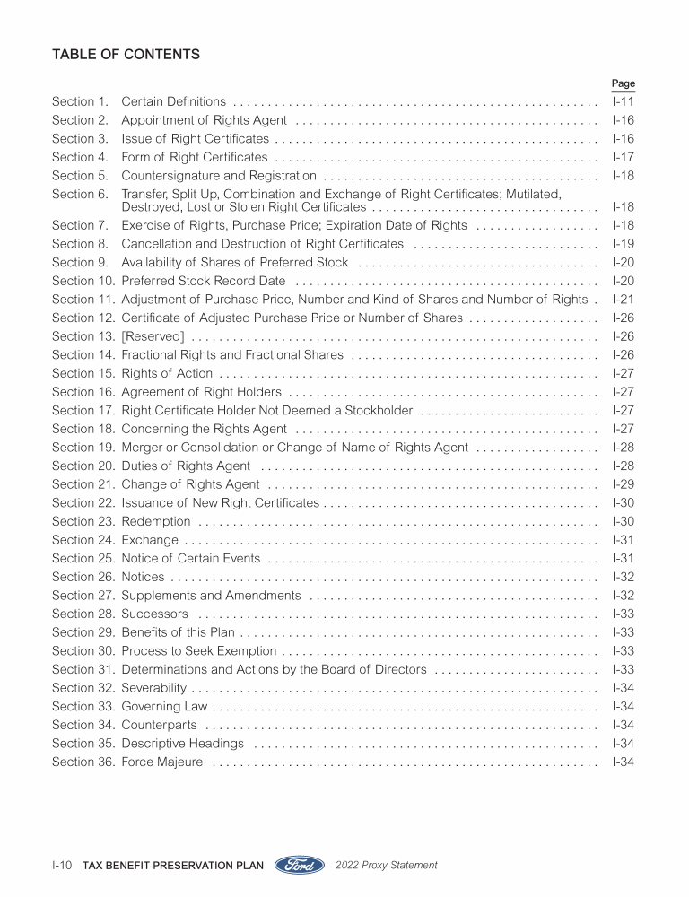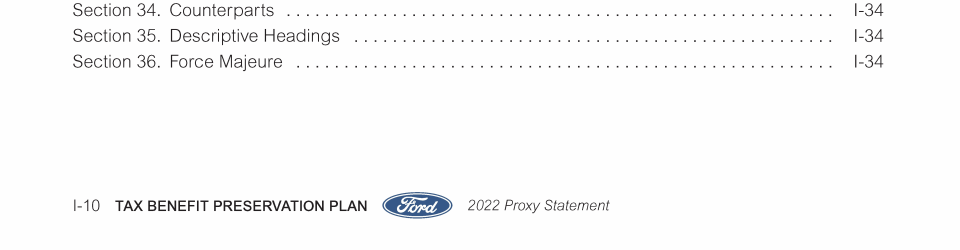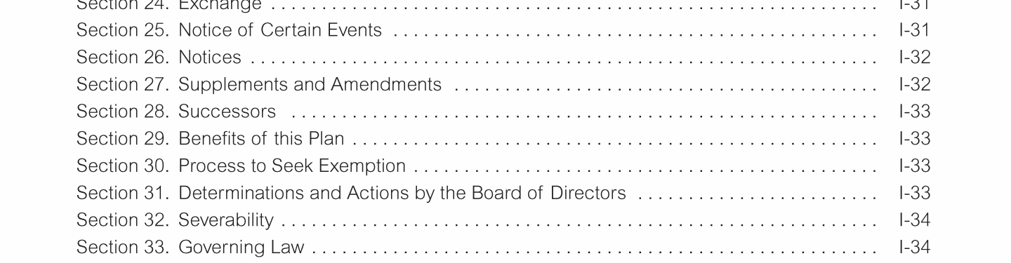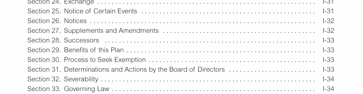 Appendix I. Tax Benefit Preservation Plan