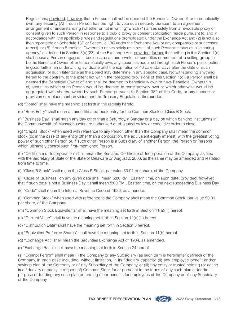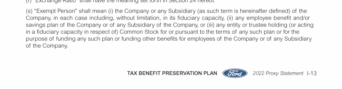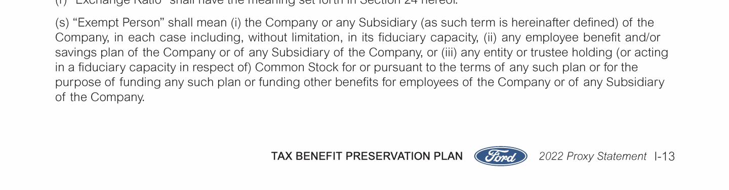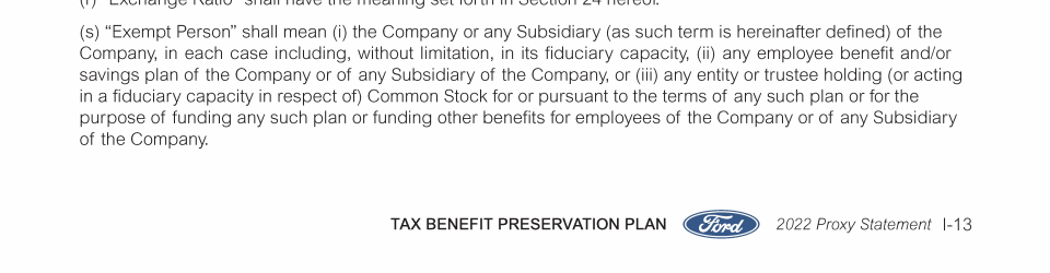 Appendix I. Tax Benefit Preservation Plan