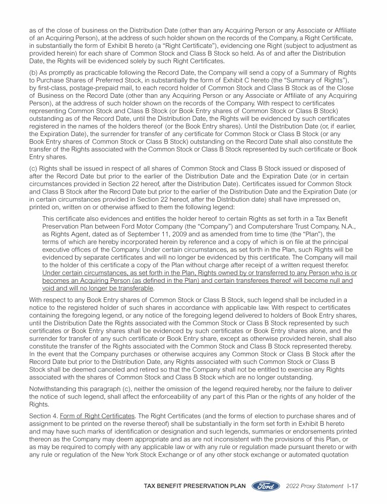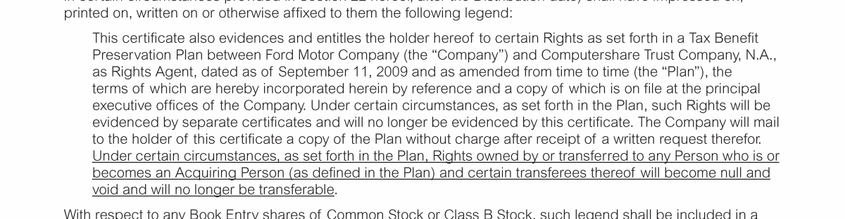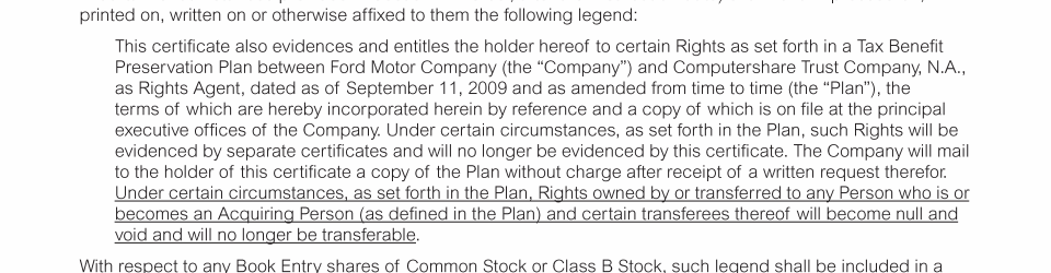 Appendix I. Tax Benefit Preservation Plan