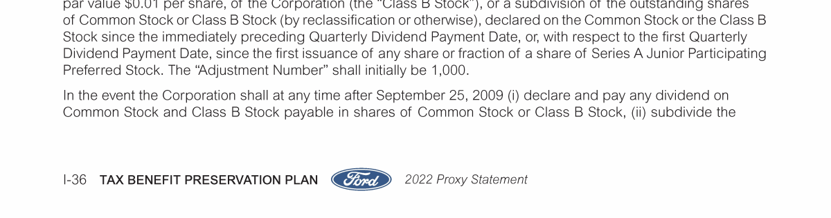 Appendix I. Tax Benefit Preservation Plan