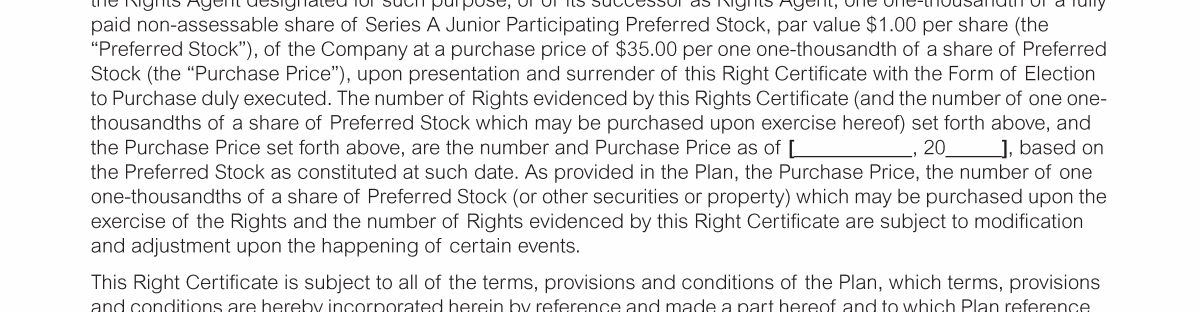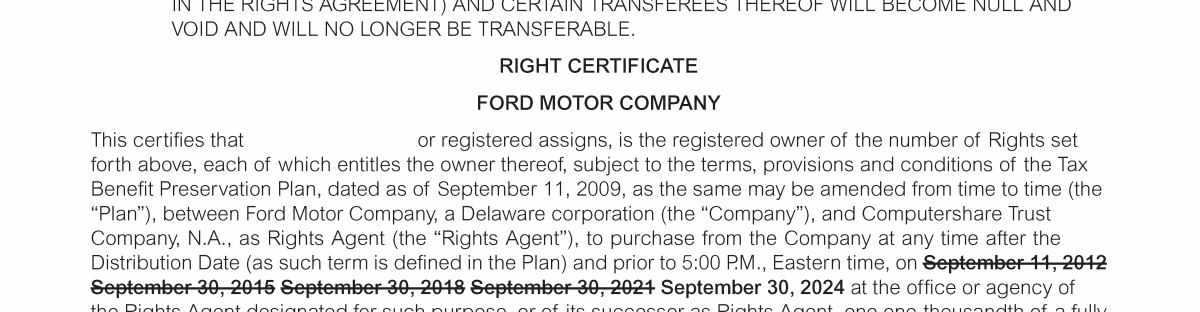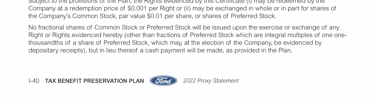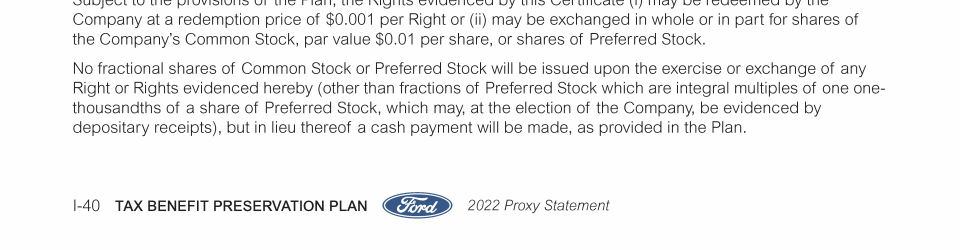 Appendix I. Tax Benefit Preservation Plan