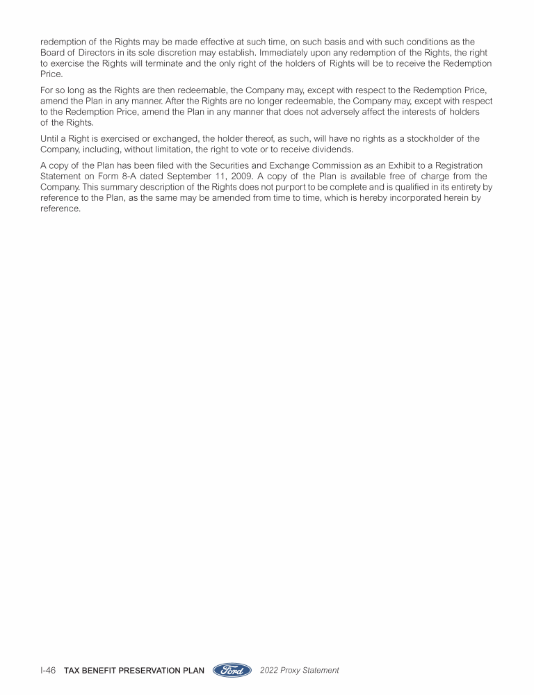 Appendix I. Tax Benefit Preservation Plan